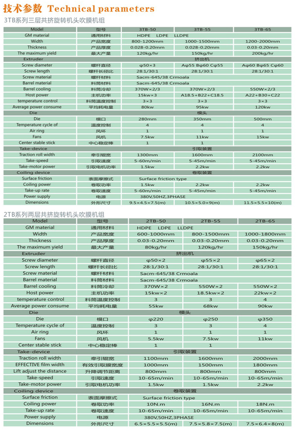 機器特性 吹制各種規(guī)格的低密度聚乙烯、高密度聚乙烯和線性低密度聚乙烯塑料薄膜,廣泛應用于食品百貨、日用、化工 針紡品、購物禮袋和工業(yè)包裝。機筒、螺桿采用38CrMOAI合金材料經(jīng)氨化處理精密加工而成,具有很好的耐磨和耐腐蝕性。 選購配置 自動吸料機、表面處理、空氣壓縮機、冷風機、氣漲軸。 ...