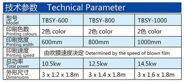 根據塑料外資企業要求,生產的雙色印刷機。主要配套在吹膜機上使用,具有快捷、便利的特點,使吹膜印刷一起完成。